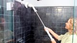 A wall to wall tiled shower and bath tub isn t the easiest to clean but the clorox tub tile scrubber is there to help.
